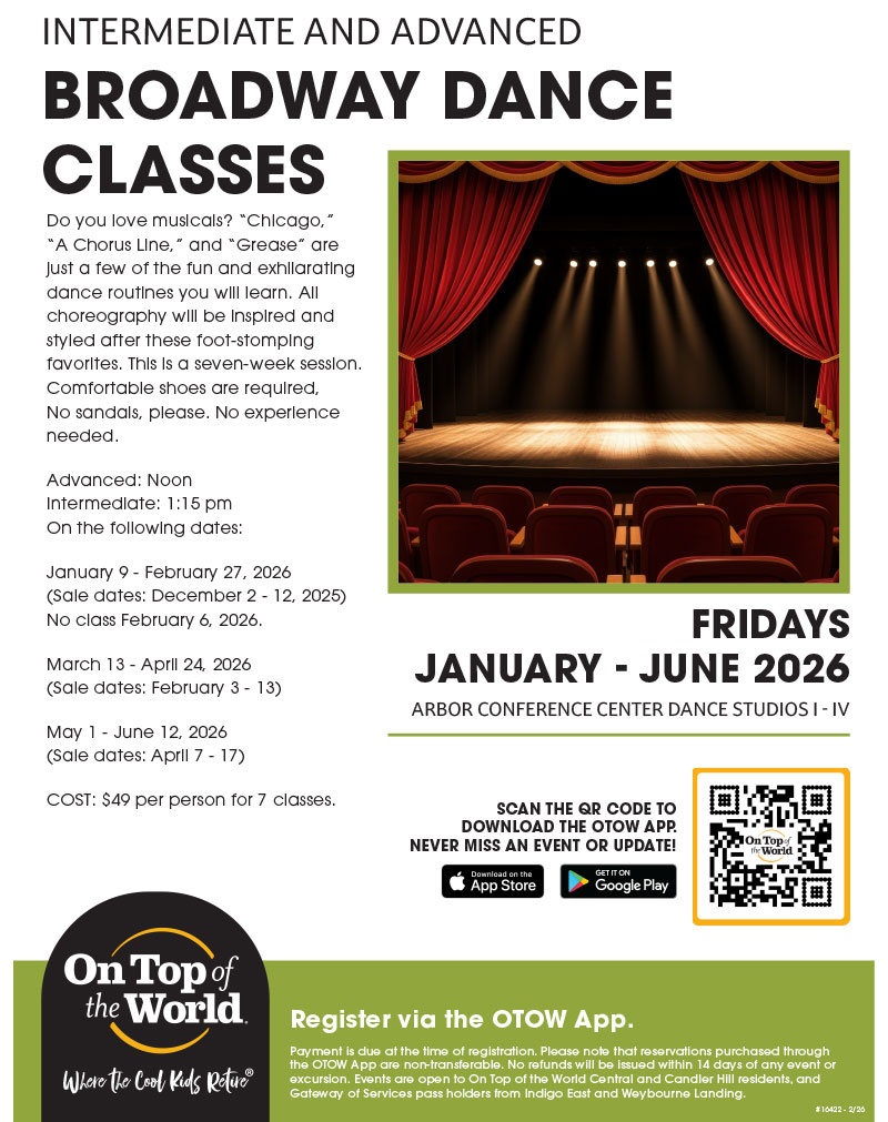 On Top of the World Communities is Where The Cool Kids Retire. We offer our residents an endless stream of concerts, dances, parties, theatre, get-togethers, happy hours as well as more than 200 resident clubs, and social and service organizations to get involved with.