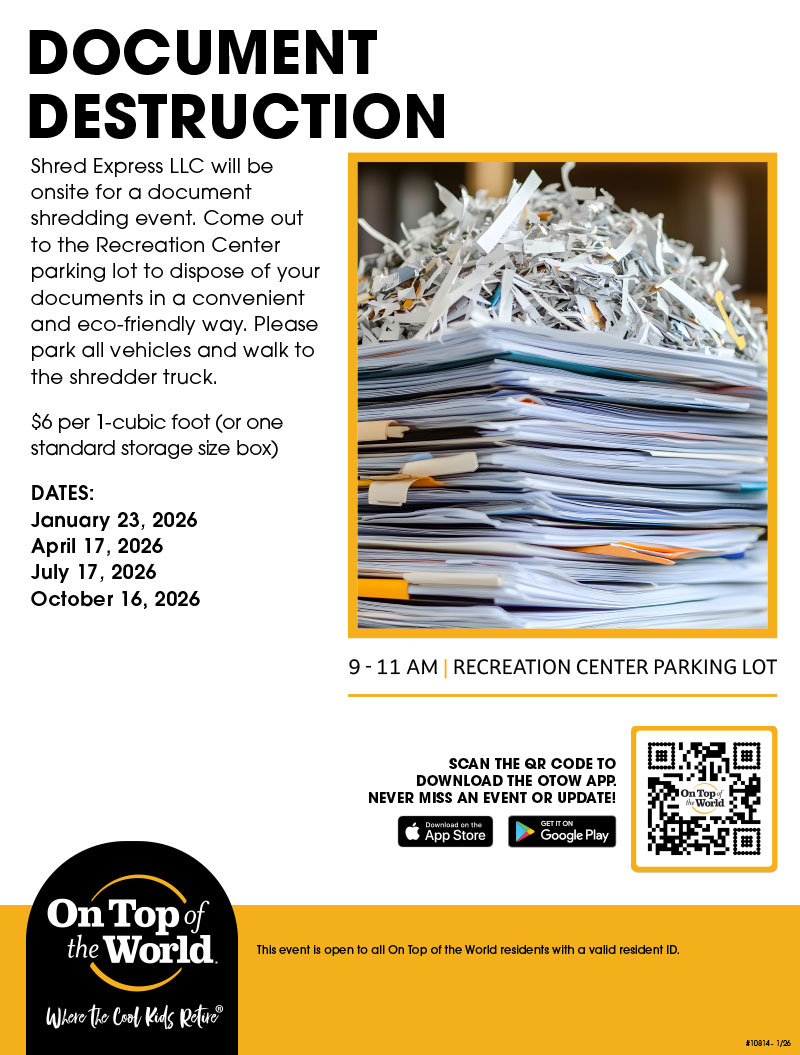 On Top of the World Communities is Where The Cool Kids Retire. We offer our residents an endless stream of concerts, dances, parties, theatre, get-togethers, happy hours as well as more than 200 resident clubs, and social and service organizations to get involved with.