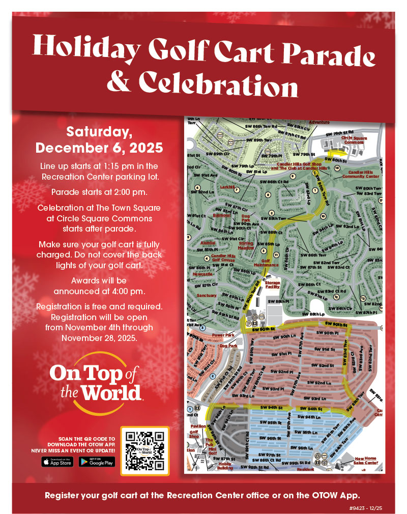 On Top of the World Communities is Where The Cool Kids Retire. We offer our residents an endless stream of concerts, dances, parties, theatre, get-togethers, happy hours as well as more than 200 resident clubs, and social and service organizations to get involved with.
