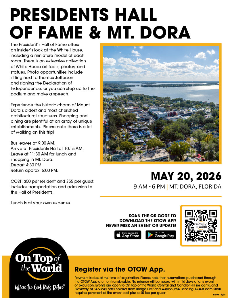 On Top of the World Communities is Where The Cool Kids Retire. We offer our residents an endless stream of concerts, dances, parties, theatre, get-togethers, happy hours as well as more than 200 resident clubs, and social and service organizations to get involved with.