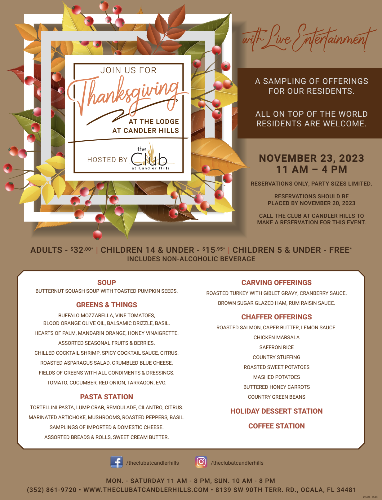 Thanksgiving at The Club open to all OTOW residents.