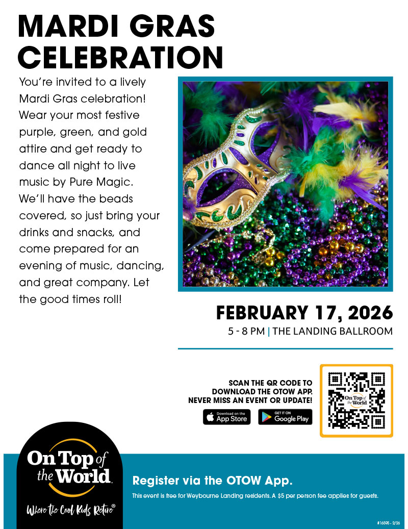 On Top of the World Communities is Where The Cool Kids Retire. We offer our residents an endless stream of concerts, dances, parties, theatre, get-togethers, happy hours as well as more than 200 resident clubs, and social and service organizations to get involved with.